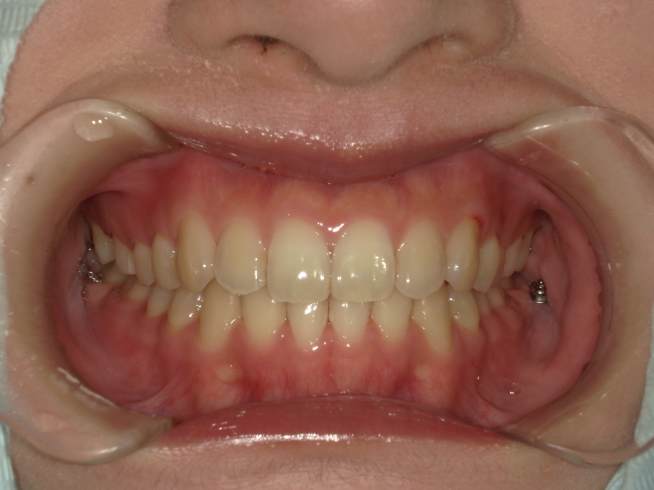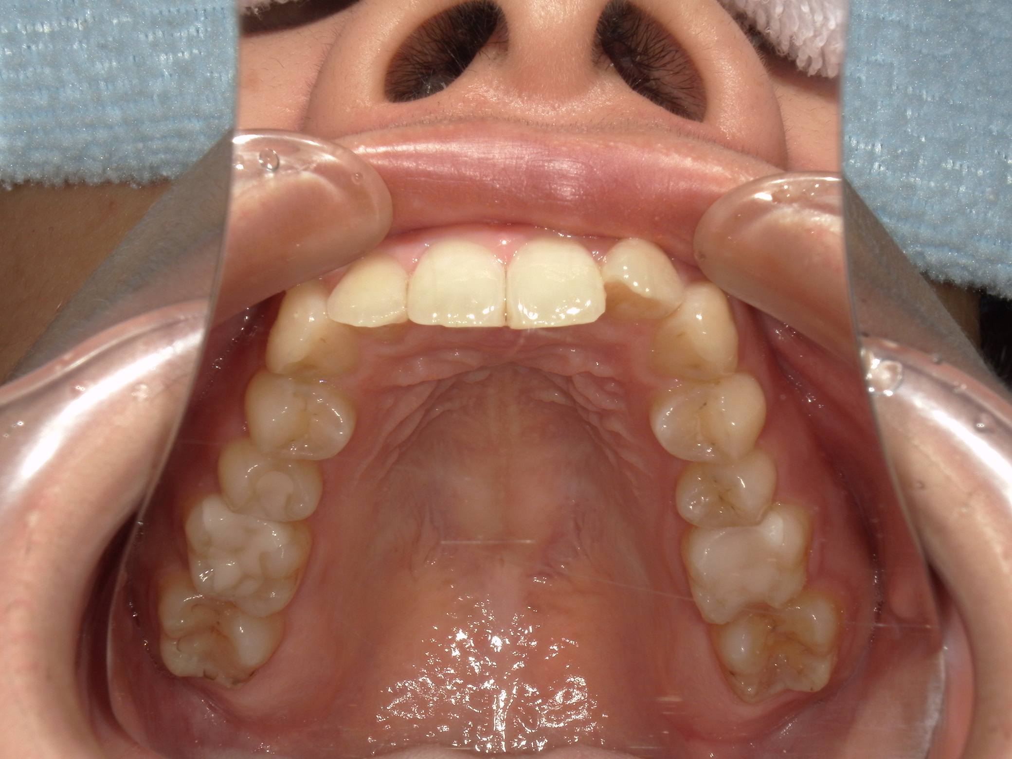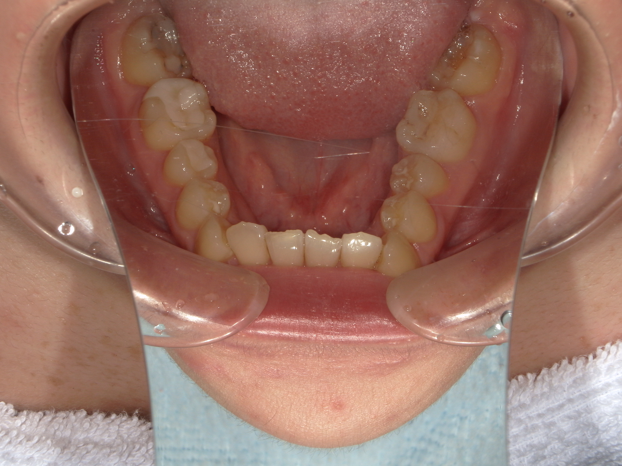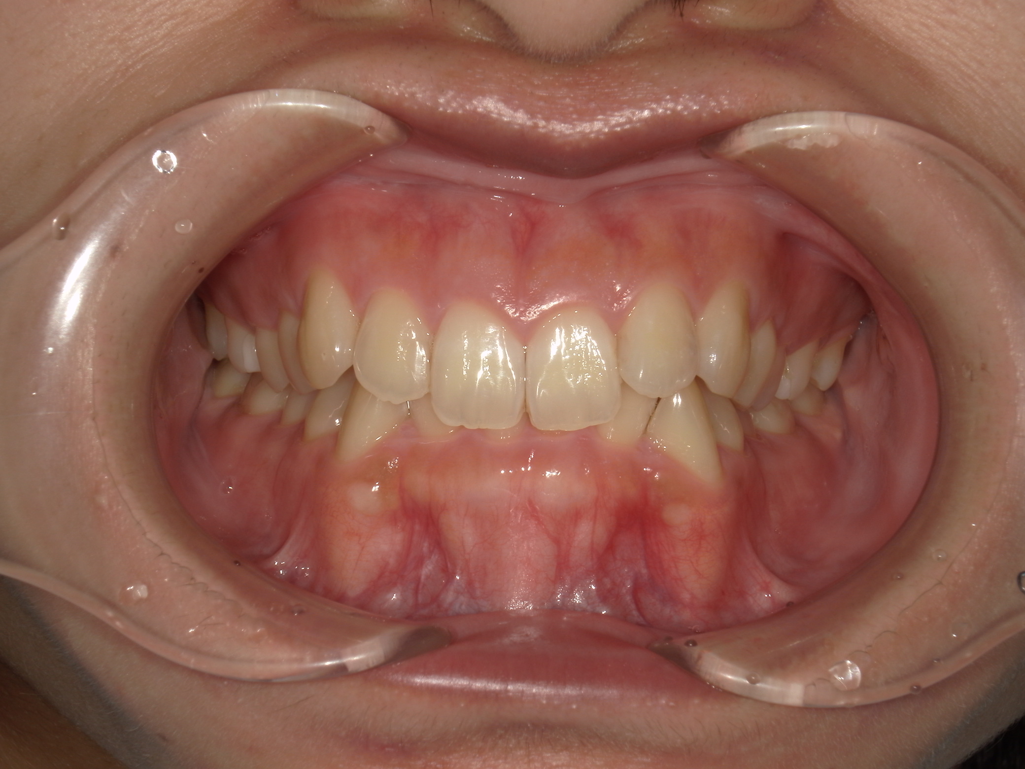 全体的な叢生、口元の突出は顕著ではないが、本人希望は突出感の改善であった。