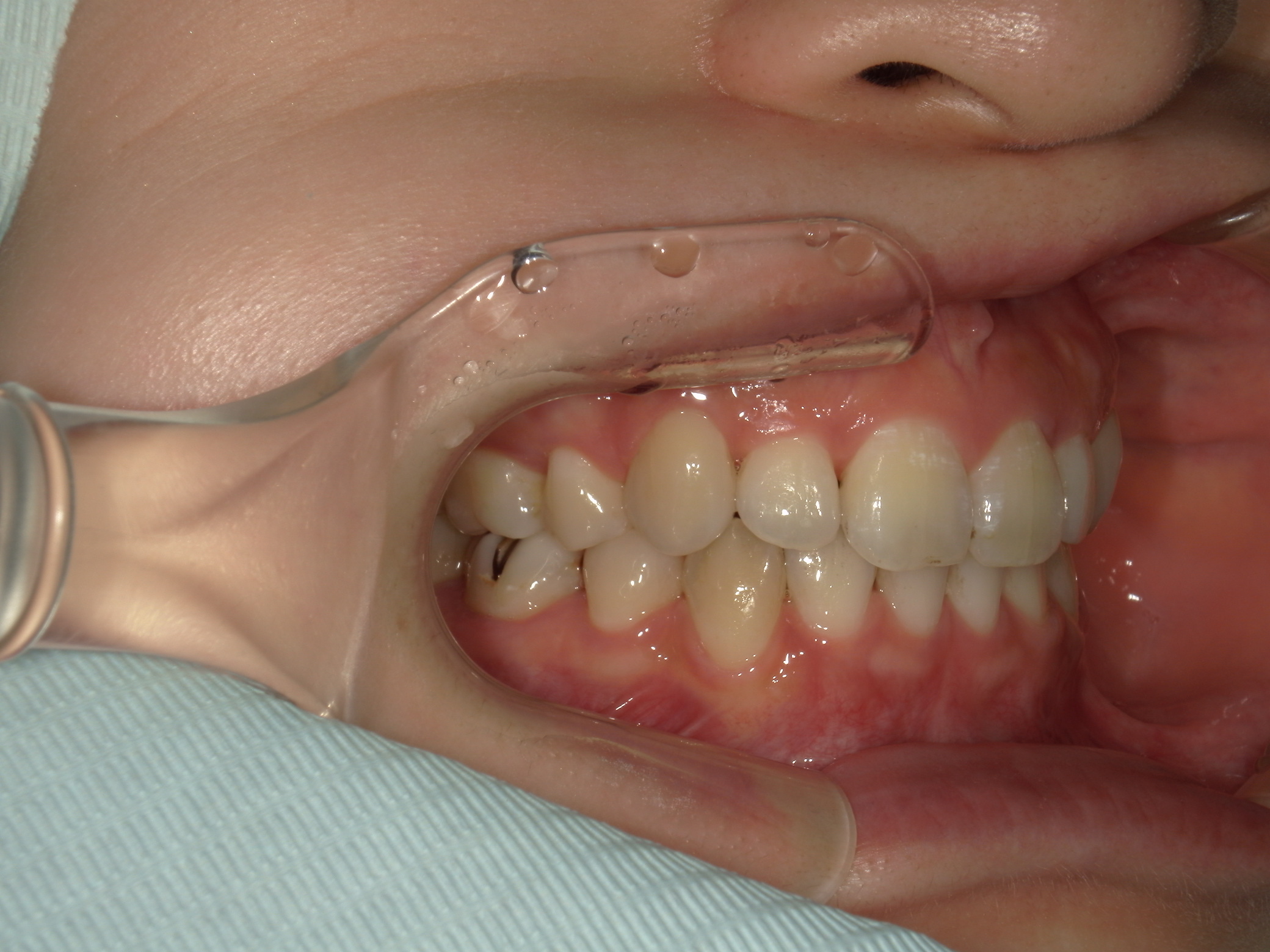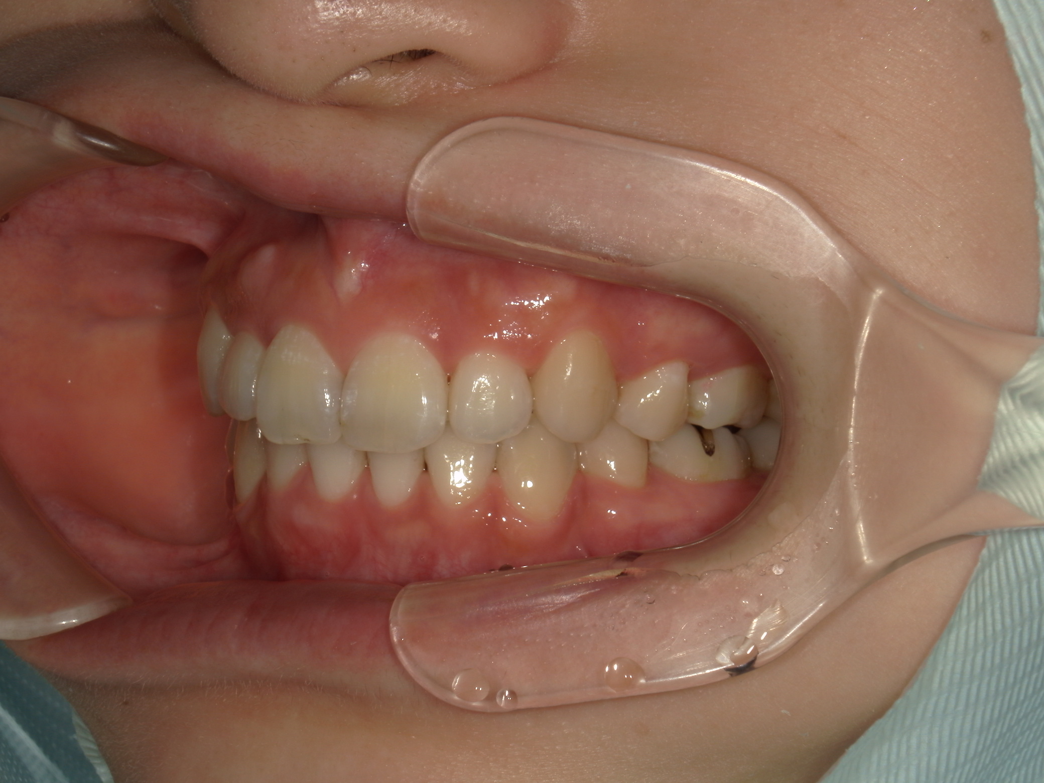 前歯の反対咬合は顎位の変化を示す兆候であるため、矯正治療と並行して顎関節症に対するケアが必要。