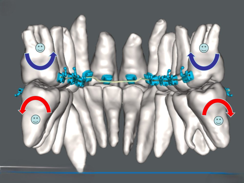 - 裏側と表側の力系の違いが上下顎で不均衡を生じさせやすい: 裏側矯正装置と表側矯正装置では、歯に力を加えるメカニクスが根本的に異なります。例えば、裏側装置は歯の裏側に沿ってワイヤーが装着されるため、歯を奥に引っ込めたり、前歯を内側に倒したりする動き(トルクコントロール)が、表側装置とは異なる特性を持ちます。この上下顎で異なる力学的な特性を同時にコントロールし、最終的な理想の噛み合わせへと導くためには、緻密な治療計画と、熟練した矯正医による経験に基づいた調整が不可欠です。不適切な力学的な管理は、上下顎の歯の移動に不均衡を生じさせ、治療期間の延長や、さらなる問題を引き起こす可能性さえあります。