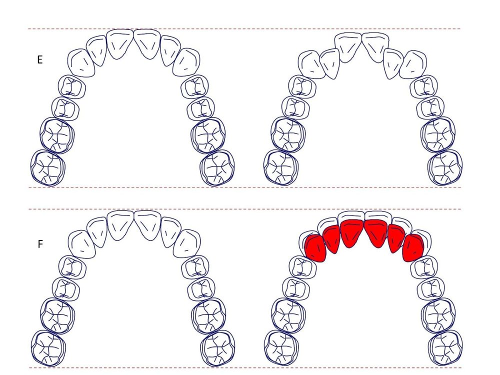 E:部分矯正でスペースがない状態で歯を内側に移動させると、結果的に歯並びがガタガタになります。歯を削らないで並べると、歯列のアーチは外に広がるので結果的に口元が出てしまいます。