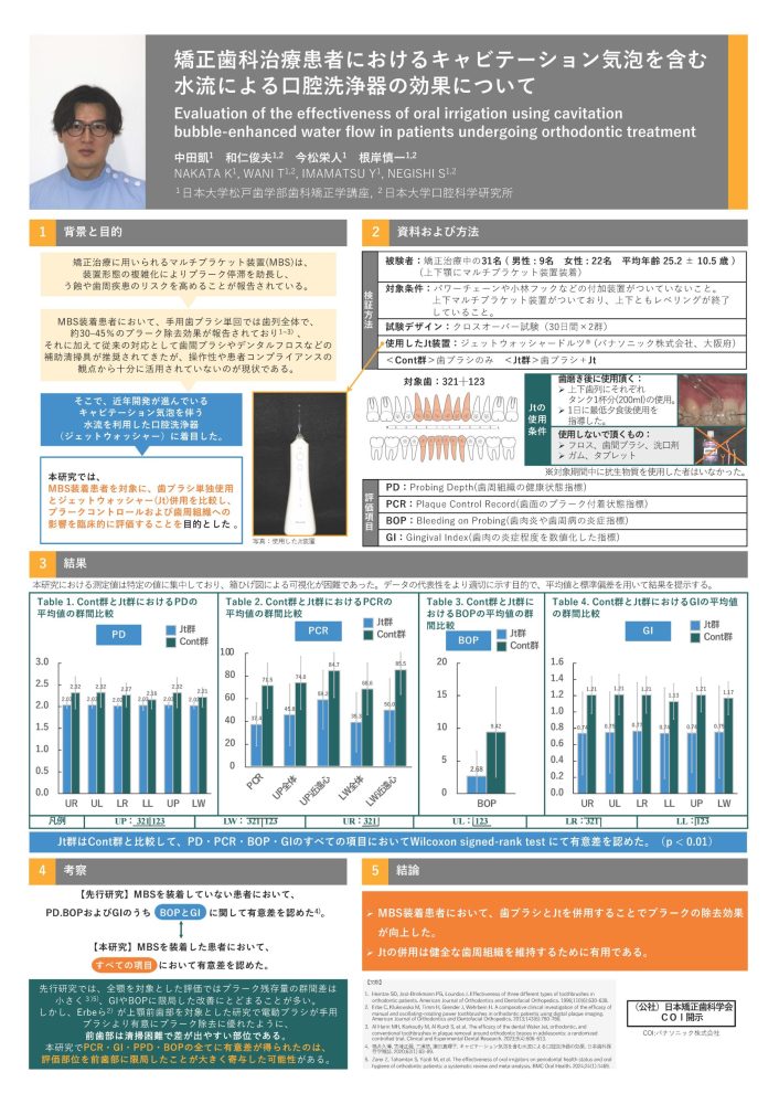 清掃環境は主に歯肉の腫れが問題となります。腫れた歯肉は歯の移動に対してぶよぶよしたクッションのように邪魔をします。腫れたまま押し続けると膨れて邪魔をしてくるのです。膨れた歯肉の周囲は更に汚れが溜まりやすい環境となるので、衛生状態と歯の動き、矯正治療にとって悪いことしかありません。歯ブラシだけで不足する場合は洗口剤の併用も良いでしょう。大学医局の後輩が歯ブラシとジェットウォッシャーを併用することが矯正治療中の口腔内衛生に良いとデータを出していたのでシェアしておきます。
