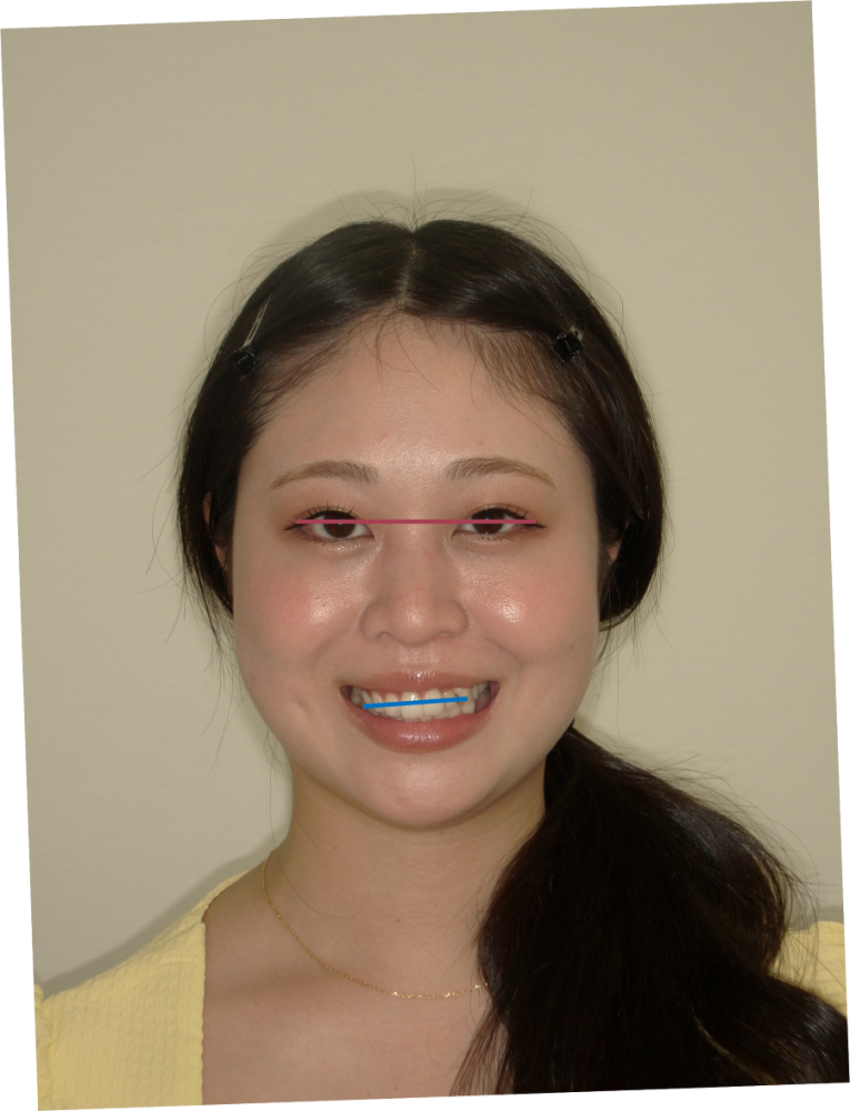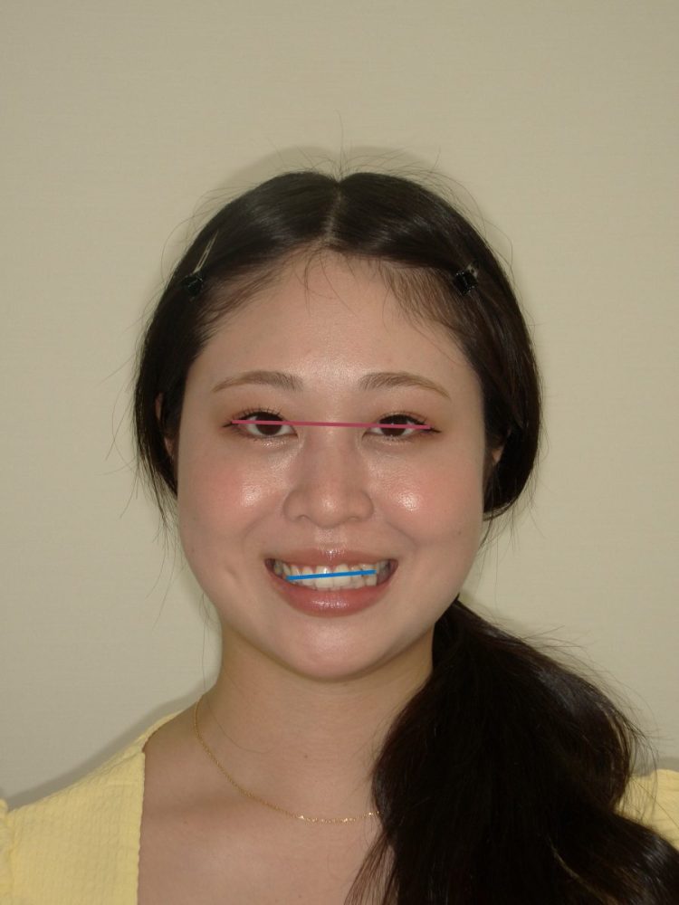 顔全体で見ると、歯並びまで右下がりに見えてしまい、患者さんが真っ直ぐ立った時に「あれ?なんか顔が歪んで見える…」という結果になりかねません。
