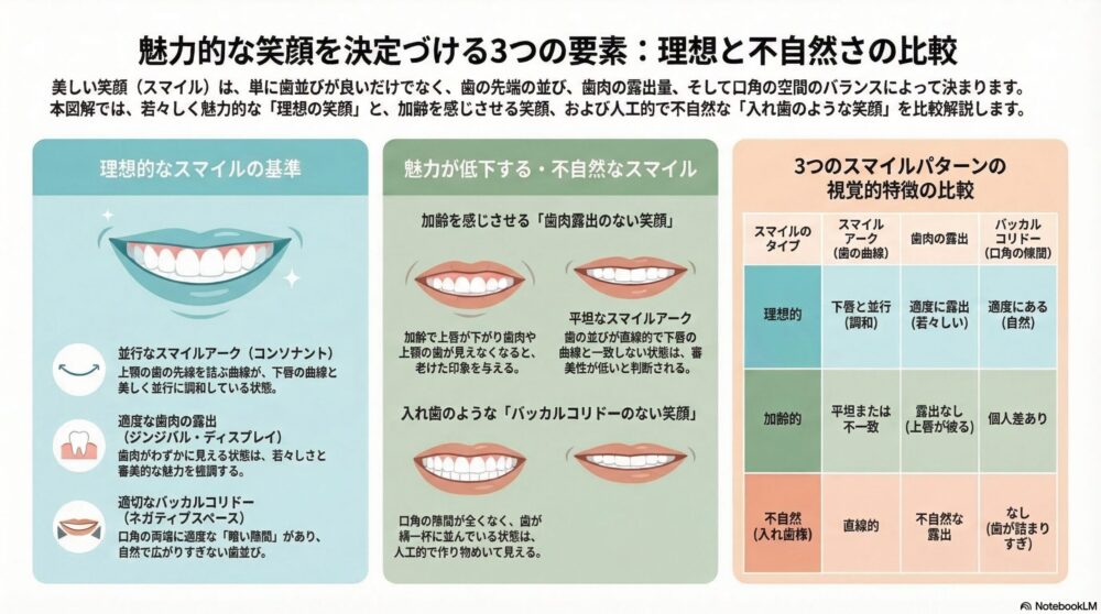 というわけで本題。お顔の印象を大きく左右する「スマイル・アーク」という重要な概念について、少し専門的なデータも交えながらお話しします。